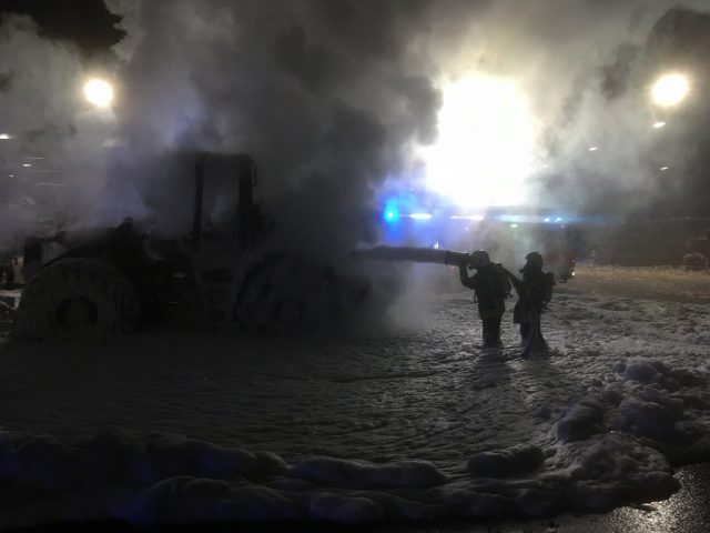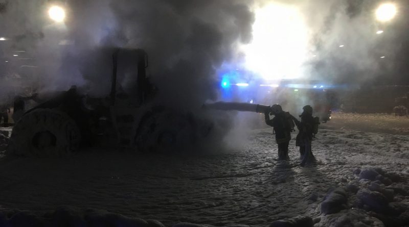 Zu diesem Zeitpunkt hatte ein Mitarbeiter bereits einen Großbrand verhindert. Er bemerke Rauchgeruch sowie Feuer aus seinem Radlader. Er fuhr den brennenden Radlader umgehend aus der Produktionshalle auf eine Freifläche vor der Halle und verhinderte so einen Brand der Produktionshalle. Die Feuerwehr wurde von dem Mitarbeiter alarmiert.