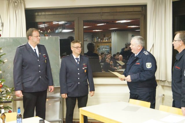 So wurden zunächst die Kameraden Joos van Nuland, Sven Reining, Luis Wies, Lukas Berlin, Marcel Blommel und Max Heisterkamp von der Jugendfeuerwehr in die Einsatzabteilung aufgenommen. Sie starten im Jahr 2024 mit ihrer Grundausbildung. Eine Beförderung zum Feuerwehrmann erhielt Noel Schwerma. Zum Oberfeuerwehrmann wurden Cornelius Oberwies, Jan Stomp und Lars Schütte befördert.  Zum Hauptfeuerwehrmann wurde Felix Blanke befördert. Corinna Luters und Daniel Oberwies wurden zur Unterbrandmeisterin bzw. zum Unterbandmeister befördert. Darauf folgte die Beförderung von Lucas Schering und Steffen Kemna zum Brandmeister. Anschließend wurde Lucas Schering direkt zum stellvertretenden Gruppenführer der Gruppe 4 ernannt. Heiko Lölfing wurde dann zum Hauptbrandmeister befördert.