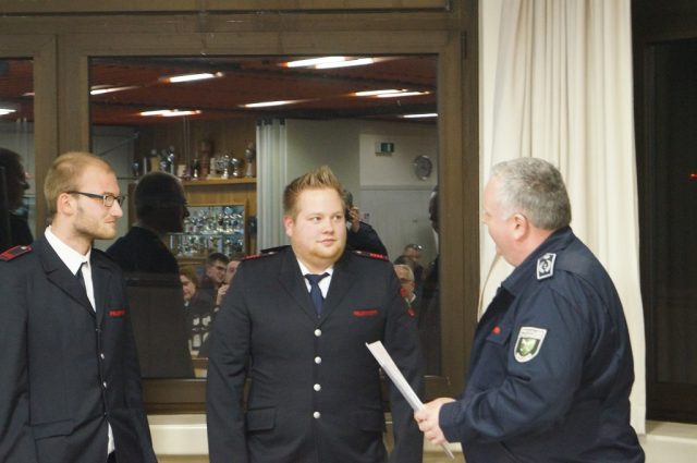 Dann ging es in der Versammlung um Ehrungen und Beförderungen. Gestartet wurde mit der Ernennung von Simon Elsing und Mike Schepers zu neuen  Sicherheitsbeauftragten für die Feuerwehr Gescher.  Luca Mance und Steffen Kemna wurden zu Kleiderwarten ernannt. Beide Funktionen waren zuvor von Johannes Watermeier bekleidet worden, der diese Aufgaben jedoch nach der Ernennung zum stellvertretenden Leiter der Feuerwehr nicht mehr wahrnehmen darf. Eine weitere Ernennung war die Ernennung von Mark Krumbiegel und Christian Mathmann zu Vertrauensleuten.
