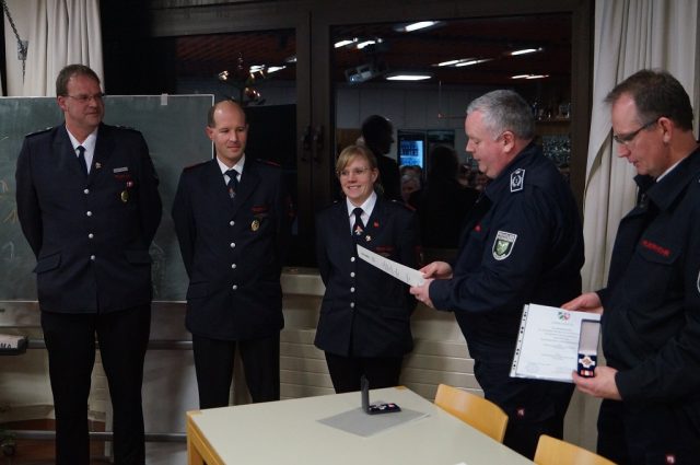 Nach über 40 Jahren verabschiedete sich Reinhard Stomp aus der Einsatzabteilung. Er wurde von der Mannschaft mit einem Standing Ovation verabschiedet.