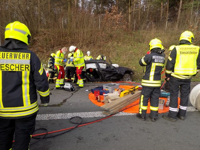 Der Fahrer wurde daraufhin im Fahrzeug eingeklemmt und musste von der Feuerwehr befreit werden. Der Fahrer wurde mit einem Herbeigerufenen Rettungshubschrauber in eine Klinik geflogen.