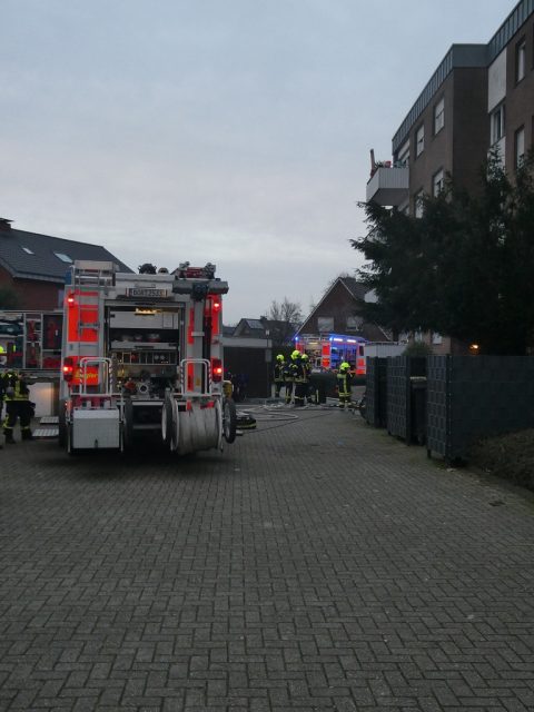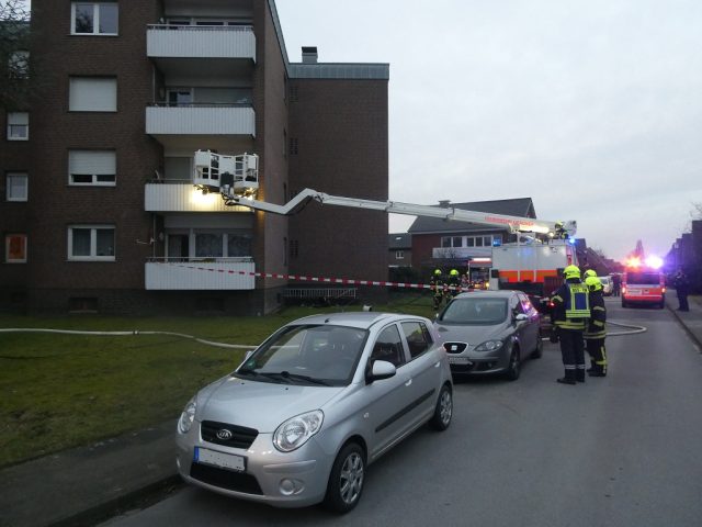 Gegen 16:37 Uhr wurde die Feuerwehr zu einem Wohnungsbrand in einem Mehrfamilienhaus auf dem Amselweg gerufen. Bei Eintreffen der ersten Kräfte war die Lage unübersichtlicht, da zwar die Wohnungsinhaberin aus der Brandwohnung sich außerhalb des Gebäudes befand jedoch unklar war wo sich mehrere Personen aus weiteren befanden. Es hieß zunächst, dass sich diese noch in den Wohnungen befanden. So wurde sofort das Stichwort auf Vollalarm für die gesamte Feuerwehr Gescher mit dem Stichwort Menschenleben in Gefahr erhöht. In der betroffenen Wohnung stand die Küche in Vollbrand. Ein Trupp unter Atemschutz ging sofort zur Brandbekämpfung vor. Parallel wurden weiter Kräfte über dem Teleskopmast eingesetzt. Zudem wurden alle Personen aus den im Wohnkomplex befindlichen Wohnungen ins Freie geführt und in einem Sammelplatz registriert. Insgesamt wurden 28 Personen, darunter auch einige Kleinkinder aus diesem Wohnkomplex gerettet. Zusätzlich wurden weitere Bewohner des Nachbarkomplexes zunächst draußen betreut. Die Frau aus der Brandwohnung musste zur weiteren Behandlung mit dem Rettungswagen ins Krankenhaus gebracht werden. Weitere Personen wurden nicht verletzt, mussten jedoch teilweise während Ihres Aufenthaltes draußen mit Decken versorgt werden.