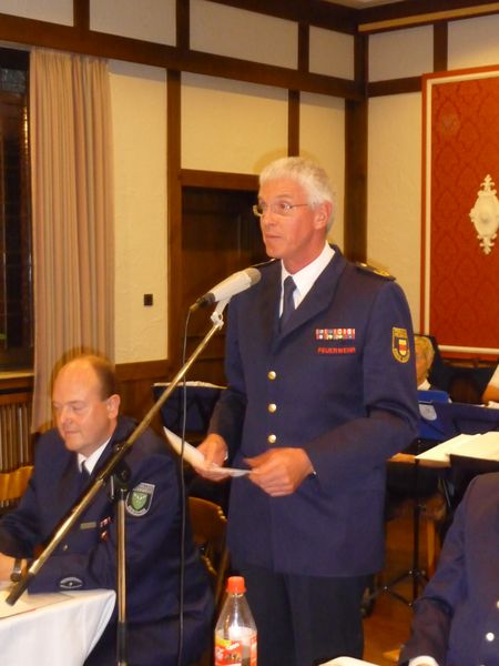 Zunächst eröffnete jedoch der Stadtbrandinspektor die Versammlung. Neben den Feuerwehrkameraden konnte er auch den Bürgermeister Hubert Effkemann, den Kreisbrandmeister Johannes Thesing, den Ordnungsamtsleiter Berthold Entrup sowie Vertreter vom Stadtrat sowie der Polizei begrüßen. Er blickte erneut auf ein Jahr voller Tätigkeiten zurück. Er betonte, dass dies jedoch nicht nur die Einsätze seien, sondern auch die Fahrzeugneuanschaffungen mit den damit verbundenen Schulungsaufwand, dem Tag der offenen Tür zum 20-jährigem Jubiläum der Jugendfeuerwehr und dem Leistungsnachweis der Feuerwehren in Gescher mit mehr als 1000 Teilnehmern. Er dankte allen Kameraden für die umfangreiche Unterstützung in allen Bereichen.