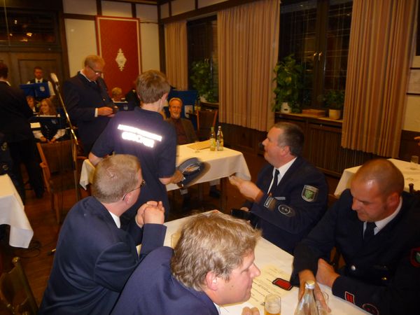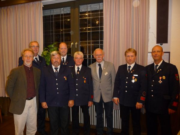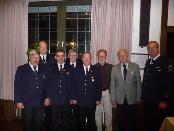 Nach den Grußworten folgten die Ehrungen und Beförderungen. Neben der schon besagten Auszeichnung für 50 Jahre Feuerwehr für Herbert Schlüter wurden auch 3 Kameraden für 25 Jahre Feuerwehr geehrt. So erhielten die Kameraden Andreas Osterkamp, Stefan Hölker und Rolf Kesselmann diese Auszeichnung. Die Kameraden Hartmut Lieneweg, Hermann Inhestern sowie Reinhard Lölfing wurden in die Alters- u. Ehrenabteilung verabschiedet. Dann folgten die Beförderungen. Zum Oberbrandmeister wurden Johannes Kersten sowie Marko Bricke ernannt,. zum Hauptbrandmeister wurde Stefan Thesseling befördert. Des weiteren erhielt Martin Schröer noch die Beförderung zum Brandoberinspektor.