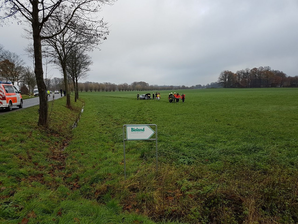 Gegen 11:00 Uhr ereignete sich ein Alleinunfall auf dem Ahauser Damm. Dort war eine PKW Fahrerin von der Straße abgekommen und landete mit dem PKW auf einem Feld. Sie verletzte sich dabei und musste vom Rettungsdienst ins Krankenhaus gebracht werden. Da der PKW weit von der Straße auf einem Feld gelandet war, wurde die Feuerwehr zur Unterstützung des Rettungsdienstes gerufen. Gemeinsam wurde die Patientin zum Rettungswagen gebracht.