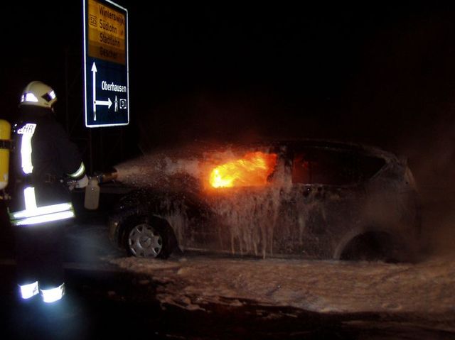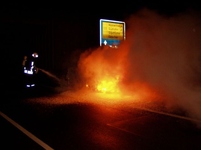 Zu einem Fahrzeugbrand auf der B525 in Richtung Coesfeld wurden die Kameraden der Freiwilligen Feuerwehr Gescher am Dienstag Abend gerufen. Bei Eintreffen stand der Pkw bereits in Vollbrand, so dass ein Trupp unter Umluft unabhängigem Atemschutz vorgehen musste. Anschließend begleitete ein Fahrzeug den Abschleppunternehmer noch bis zur Sammelstelle um bei einer Rückzündung schnell eingreifen zu können.