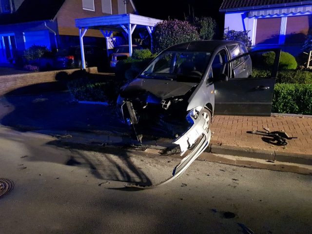Gegen 03:10 Uhr wurde eine Gruppe der Feuerwehr Gescher am Montag morgen zur Rauschenburg gerufen.  Vorort war ein PKW aus bislang ungeklärter Ursache gegen eine Laterne gefahren. Die Feuerwehr Gescher sicherte die Einsatzstelle ab, Leuchtete aus und streute die ausgelaufenen Betriebsstoffe ab.  Nach circa einer Stunde konnte die Einsatzstelle an die Polizei übergeben werden und die Kameraden rückten wieder ein.