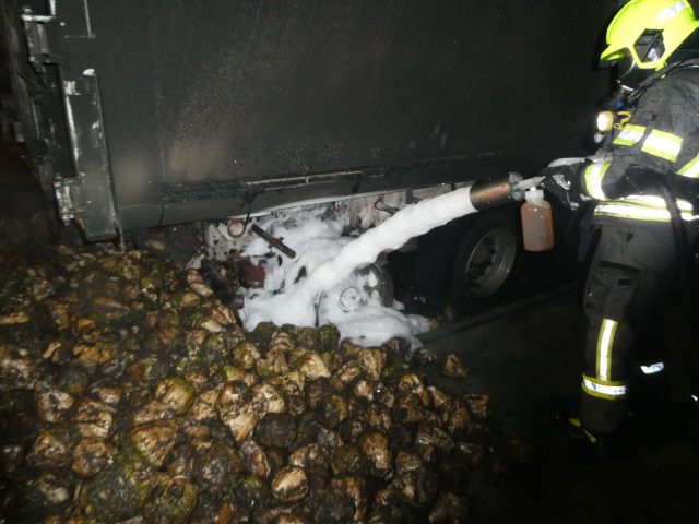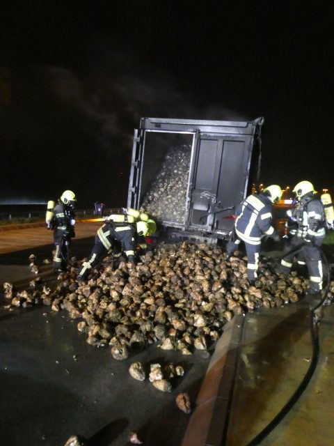 Auf der BAB 31auf einem Parkplatz, ereignete sich am Donnerstagmorgen ein Fahrzeugbrand. Ein mit Zuckerrüben beladener LKW fing auf dem hinteren Teil des Aufliegers an zu brennen. Die Feuerwehr setzte sofort zwei Trupps unter Schwerem Atemschutz ein und ging mit einem C-Rohr zur Brandbekämpfung vor. Nachdem der Auflieger gelöscht und soweit runtergekühlt war wie möglich, wurde der Auflieger abschließend mit Schaum abgedeckt um ein wieder aufflammen des Feuers zu verhindern.  Anschließend wurde die Einsatzstelle an die Autobahnpolizei übergeben.