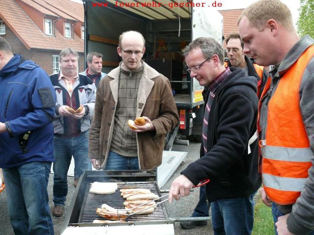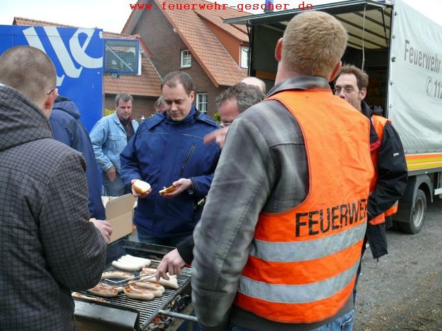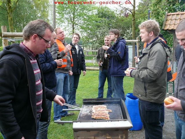 Die Pättkesfahrt machte ihrem Namen alle Ehre. Über Wald-, Wiesen und Wirtschaftswege in Richtung Südlohn. „Ich hab gar nicht gewusst dass hier ein Pättken lang führt“ hieß es aus den Reihen der Wehrmänner. Nach einigen „Tankstellen“ wurde die ehemalige Holthausener Schule angesteuert. Mittlerweile waren bereits mehr als zwanzig Kilometer geradelt worden. Der Festausschuss hatte hier den Grill aufgeheizt, an dem nicht nur Würstchen gegrillt wurden, sondern auch so manche Finger aufgewärmt wurden.