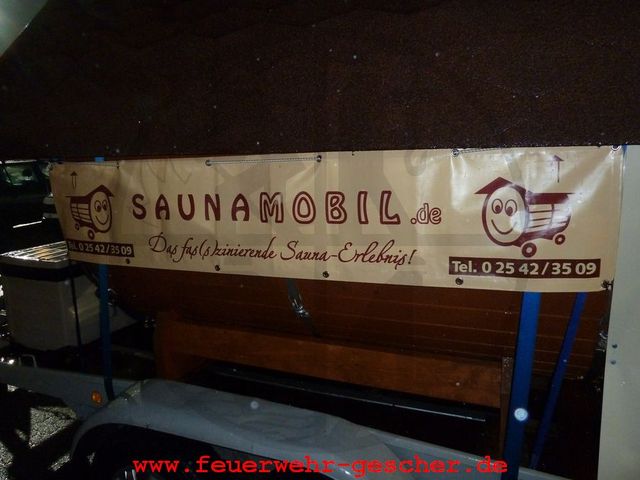 Johannes Schering aus Gescher besitzt seit einiger Zeit das Saunamobil, eine Fass-Sauna auf einem Anhänger das an fast jedem Ort transportiert werden kann. Jetzt ist er von der Firma B.L.&P. GmbH, ein großes privates Film- und Fernsehstudio mit Sitz in Kassel (Partner privater und öffentlich-rechtlicher Fernsehsender – im Bereich Kameraaufnahme, Schnitt, Studioarbeit) für Filmaufnahmen angesprochen worden. Hierzu suchte er ein paar Freiwillige. Stefan Thesling, Gruppenführer beim LZ Gescher, erfuhr von dem Projekt.Er schlug es auf einem Übungsabend der Wehr vor und schnell fanden sich sechs Sauna-Fans.