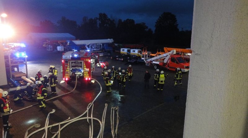 Der Löschzug Hochmoor der Feuerwehr Gescher wurde am Dienstagabend im Rahmen einer Übung zur Lackierhalle der Fa. Ruthmann gerufen. Das verrauchte Treppenhaus, verursacht durch einen Brand in der Lackieranlage, versperrte den Weg für 5 Mitarbeiter ins Freie. Der Löschzug Velen der Feuerwehr Velen wurde zur Unterstützung angefordert.