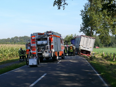 -js- Gescher. Riesenglück hatte ein 39-jähriger Lkw-Fahrer aus Coesfeld, der gestern auf der K.30 in Tungerloh von der Fahrbahn abkam und gegen einen Baum prallte: Obwohl die Fahrerkabine völlig zerstört wurde und der Mann von der Feuerwehr befreit werden musste, erlitt er „nur“ einen Schock und kam ohne körperliche Blessuren davon. „Der kann ein zweites Mal Geburtstag feiern“, staunte Stadtbrandinspektor Christian Nolte. Passiert ist der Unfall gegen 12.15 Uhr. Der Lkw-Fahrer kam auf der K.30 in Richtung Autobahnkapelle von der Fahrbahn ab, weil ihm nach eigenen Angaben ein grüner Lkw (eventuell Mark DAF) entgegen kam und er ausweichen musste. Der angefahrene Baum knickte um und fiel auf die Kabine. Feuerwehrmänner befreiten den Eingeklemmten. Die Bergung des mit 25 Tonnen Rapsschrot beladenen Lkw dauerte etwa fünf Stunden. Hinweise zum flüchtigen Lkw erbittet die Polizei in Ahaus unter 2.02561/9260.
