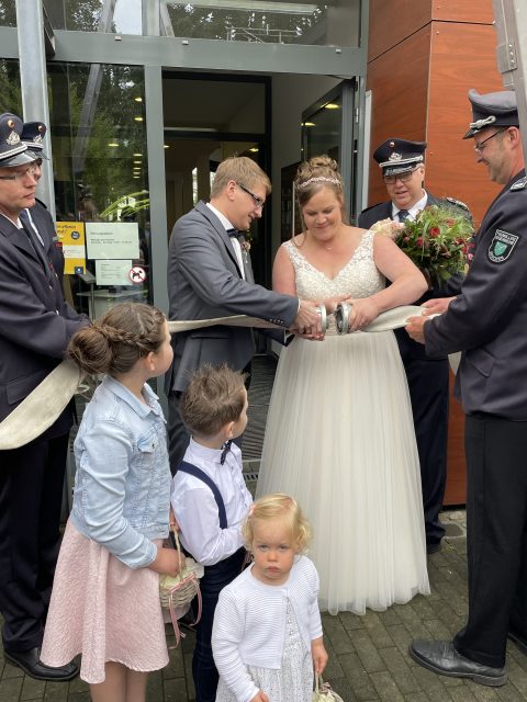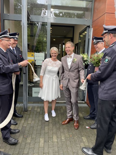 Bei beiden Trauungen gehörten der Leiter der Feuerwehr  Christian Nolte und der stellv. Leiter der Feuerwehr Markus Terwey zu den ersten Gratulanten.