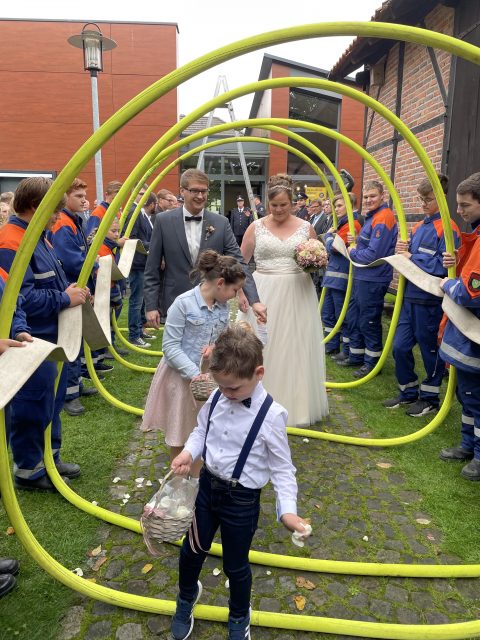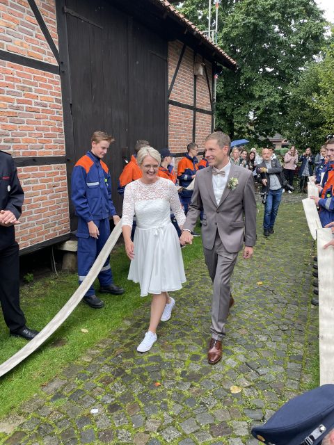 Im Anschluss heirateten Nadine und Rene. Auch hier wurde durch die Kameraden der Feuerwehr, aber auch durch die Jugendfeuerwehr, ein Ehrenspalier gebildet.