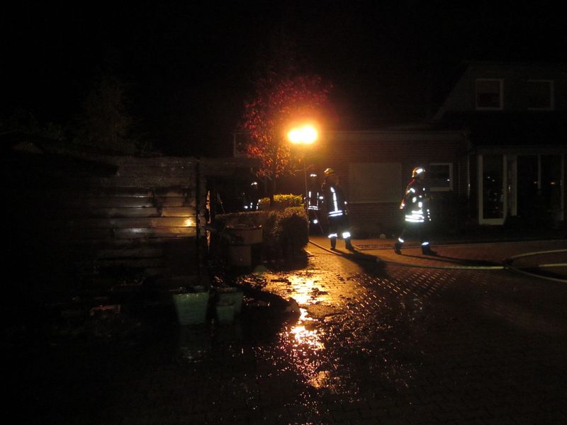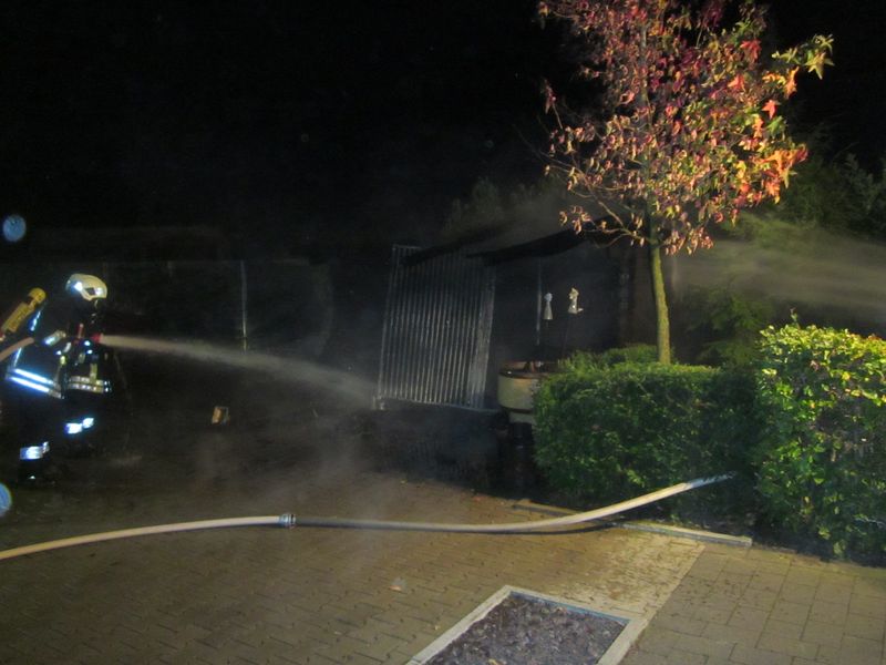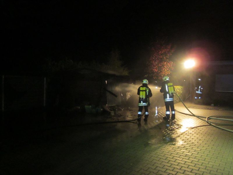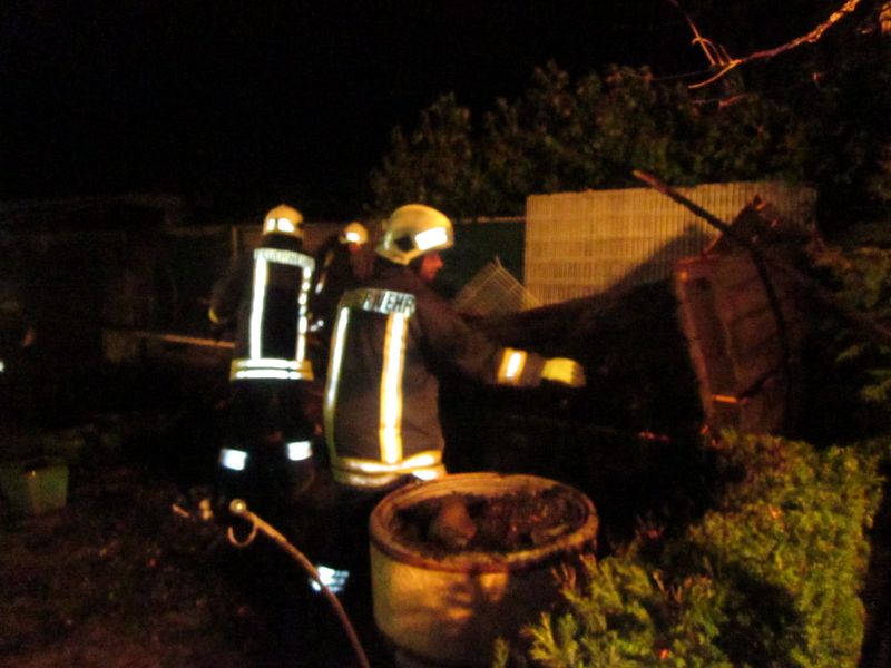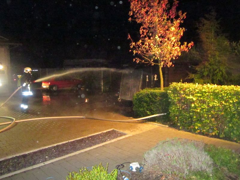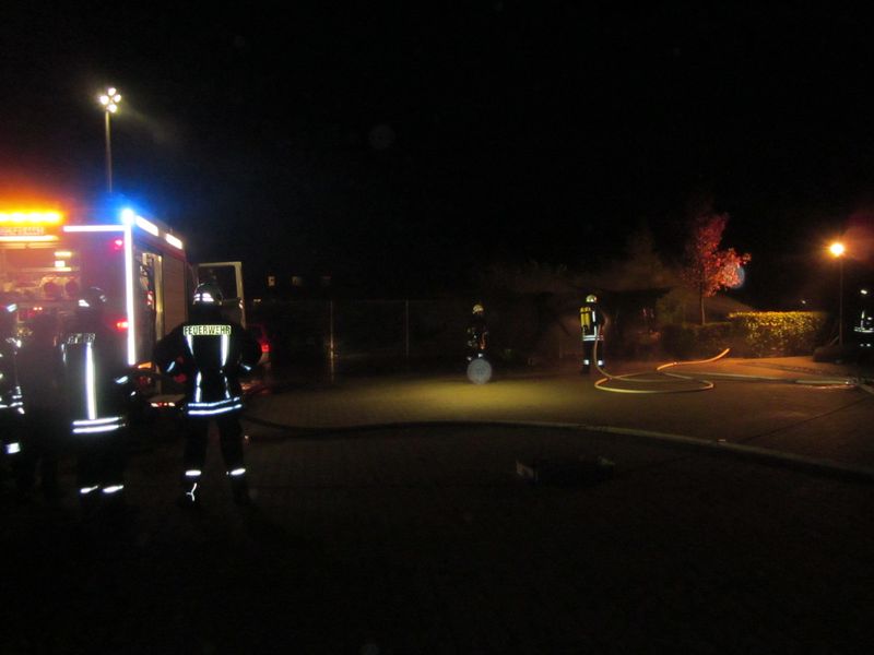 Am Sonntag Abend gegen 20:13 Uhr wurden die Kameraden per Meldeempfänger zu dem Einsatz gerufen. Auf dem Grundstück brannte aus bislang unbekannten Gründen eine Hundehütte in voller Ausdehnung. Durch die große Hitze wurde am ca. sechs Meter entferntem Wohnhaus eine Jalousie und ein Fenster beschädigt. Auch ein übergreifen auf ein Nachbargebäude konnte durch das schnelle eingreifen der Einsatzkräfte verhindert werden. Verletzt wurde niemand und es entstand ein Sachschaden von ca. 3000€.