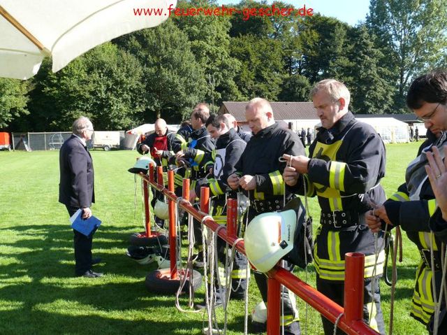 Legden-Asbeck/Kreis Borken. Mehr als zufrieden zeigte sich Kreisbrandmeister Johannes Thesing (Heiden) mit dem Leistungsnachweis der zum 34. Mal vom Kreisfeuerwehrverband Borken in Zusammenarbeit mit dem Löschzug Legden-Asbeck ausgerichtet wurde. Das Sportgelände des Fußballclubs Germania Asbeck war Treffpunkt für mehr als 1000 Feuerwehrmänner und –frauen aus dem Kreisgebiet sowie dem benachbarten Holland und der Stadt Bottrop.Hierrbei hatte der Lz-Asbeck unter Löschzugführer Rudolf Heidbrink eine gute Organisation bewiesen.