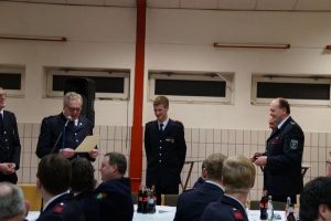 Anschließend hatte der Leiter der Feuerwehr, Stadtbrandinspektor Christian Nolte, das Wort. Auch er betonte wie wichtig Gemeinschaft ist: „Wir können nur gemeinsam alles schaffen!“, lobte die gute Zusammenarbeit zwischen den Löschzügen Gescher und Hochmoor und bedankte sich für die gute Arbeit im letzten Jahr. Nolte befand, dass der LZ Hochmoor gut aufgestellt sei und lobte die Bereitschaft der Kameraden, sich auch in Führungsfunktionen innerhalb der Wehr und des Löschzuges einzusetzen.
