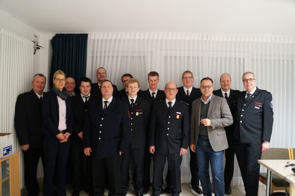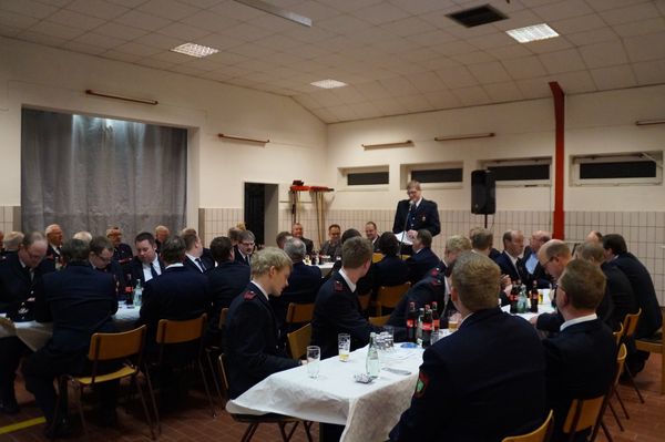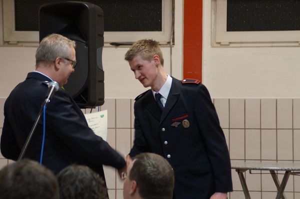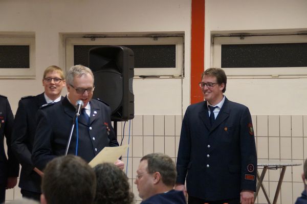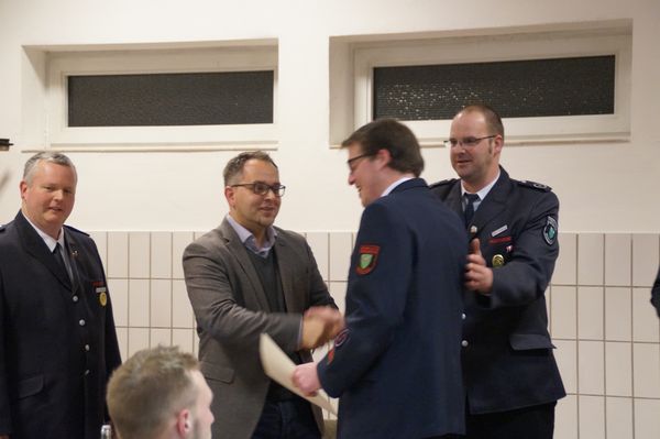 Der letzte Punkt der Tagesordnung waren Ehrungen und Beförderungen. Marco Beckmann konnte vom Feuerwehrmann zum Oberfeuerwehrmann und Johannes Kersten vom Oberbrandmeister zum Hauptbrandmeister befördert werden. Johannes Kersten erhielt außerdem für 20 Teilnahmen am Leistungsnachweis das Ehrenabzeichen in Gold mit grünem Grund. Für 15 Teilnahmen erhielt Ludger Grösbrink Gold mit rotem Grund, Marcel Kerkfeld Gold (5. Teilahme), Andre Kemper Silber (3. Teilnahme) und Klaus Bremehr für seine erste Teilnahme Bronze.