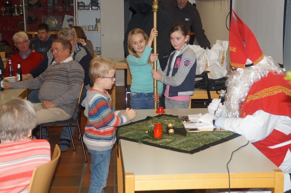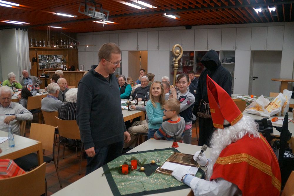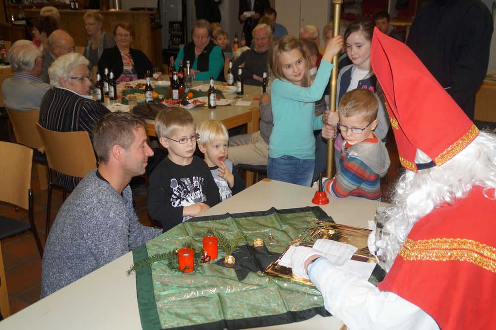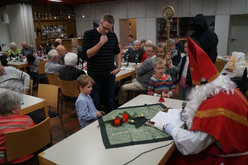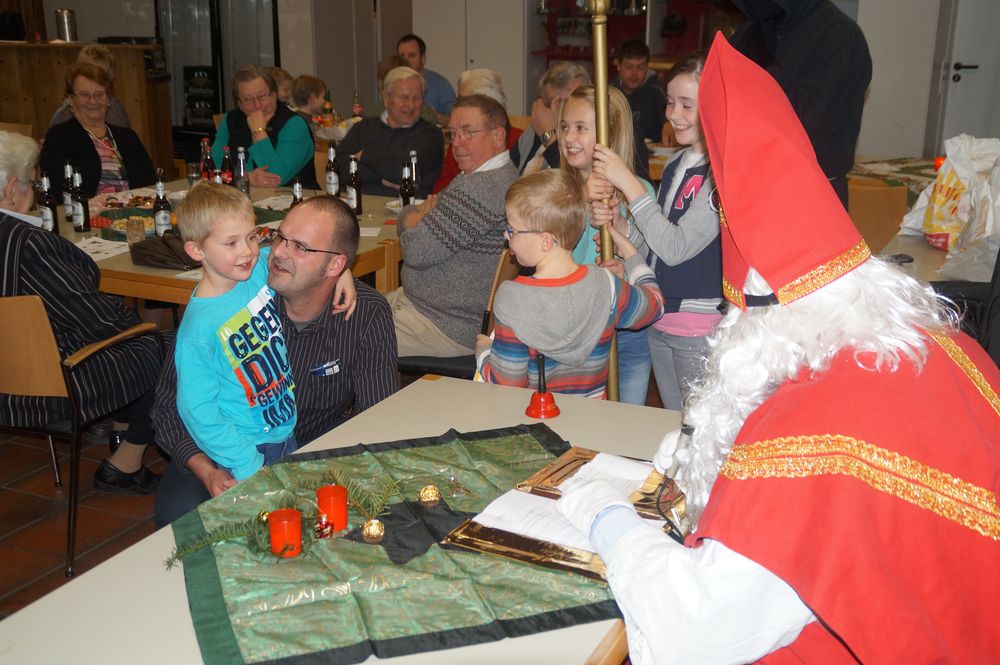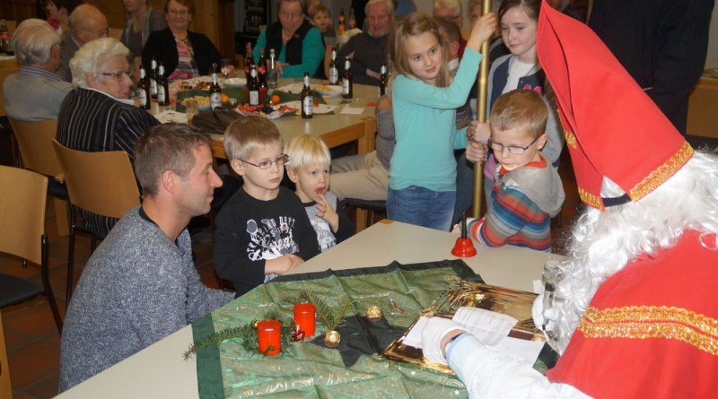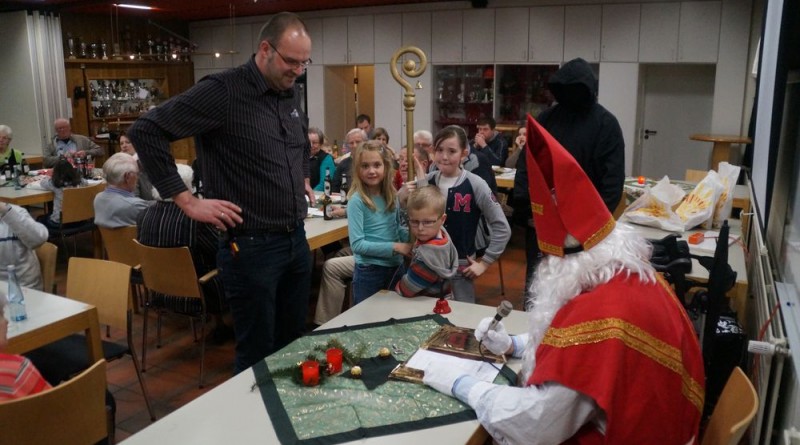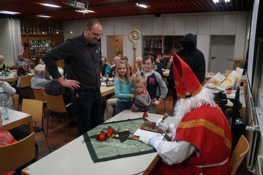 Am frühen Abend gesellten sich die jungen Familien hinzu, hatte doch der heilige St. Nikolaus sein kommen angekündigt. In voller Erwartung auf den Gast wurden gemeinsam Lieder gesungen oder den klängen des Musikzuges gelauscht. Lange ließ der Nikolaus nicht auf sich warten und wusste so einiges über die Kinder. Erstaunt waren die Kinder, das der Nikolaus auch etwas über den ein oder anderen Aktive Feuerwehrmann zu berichten hatte.