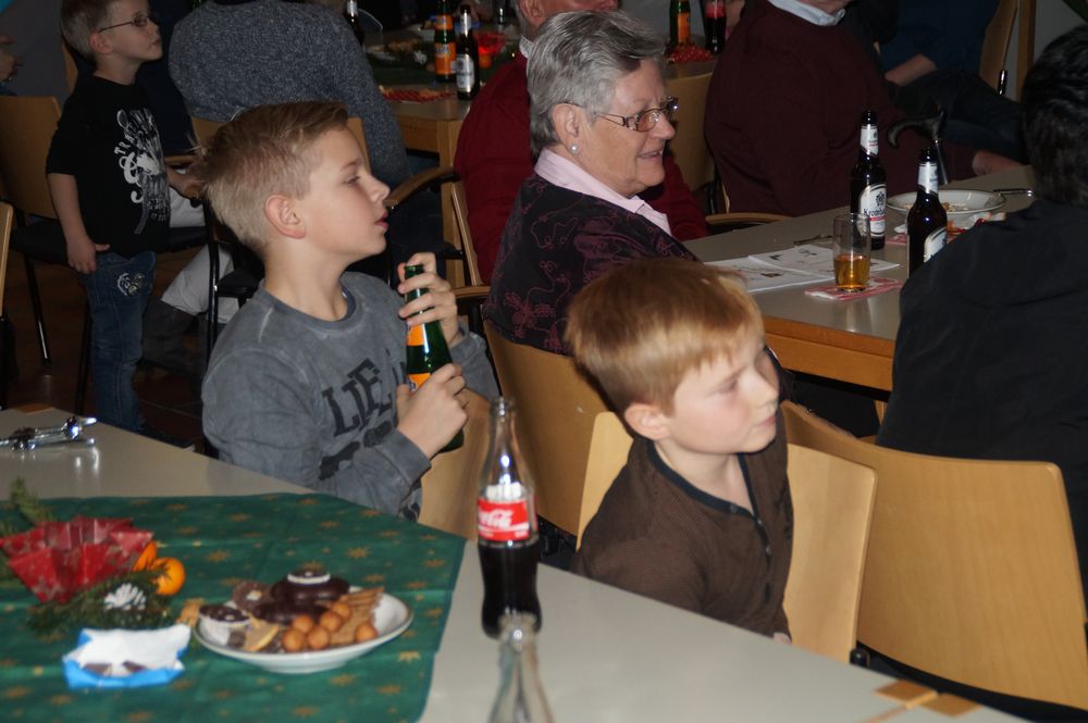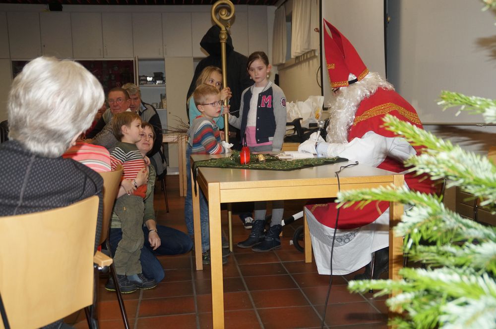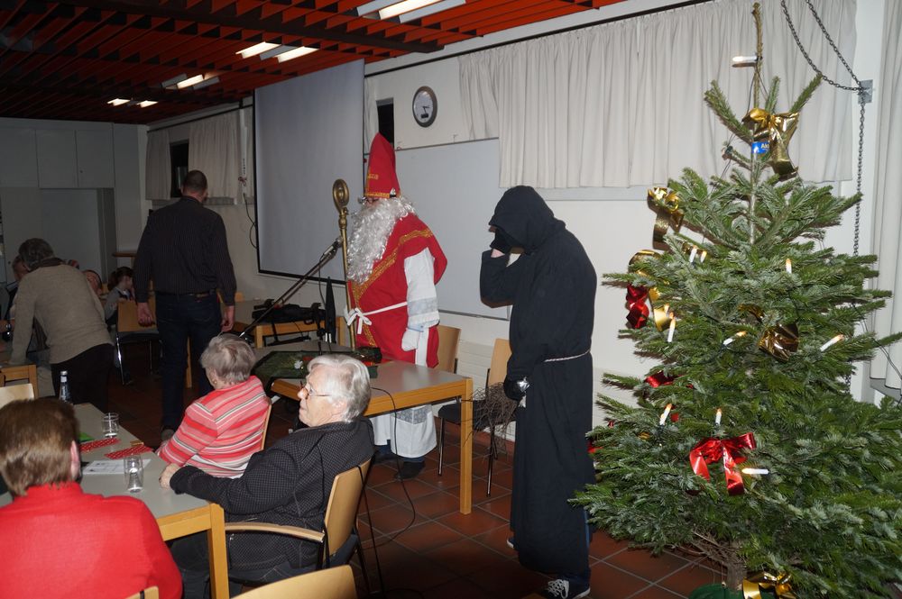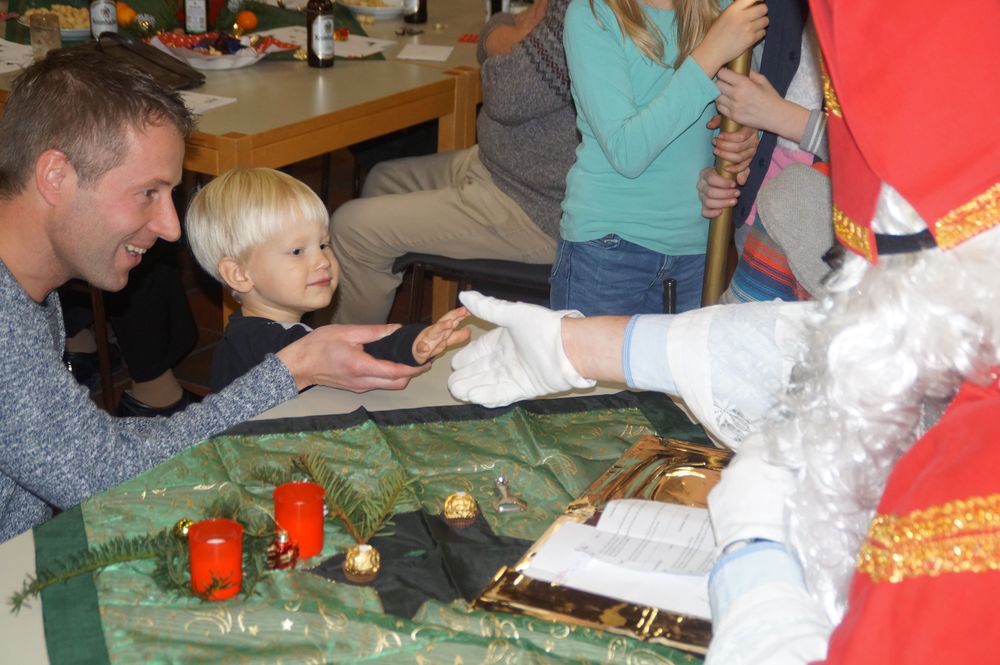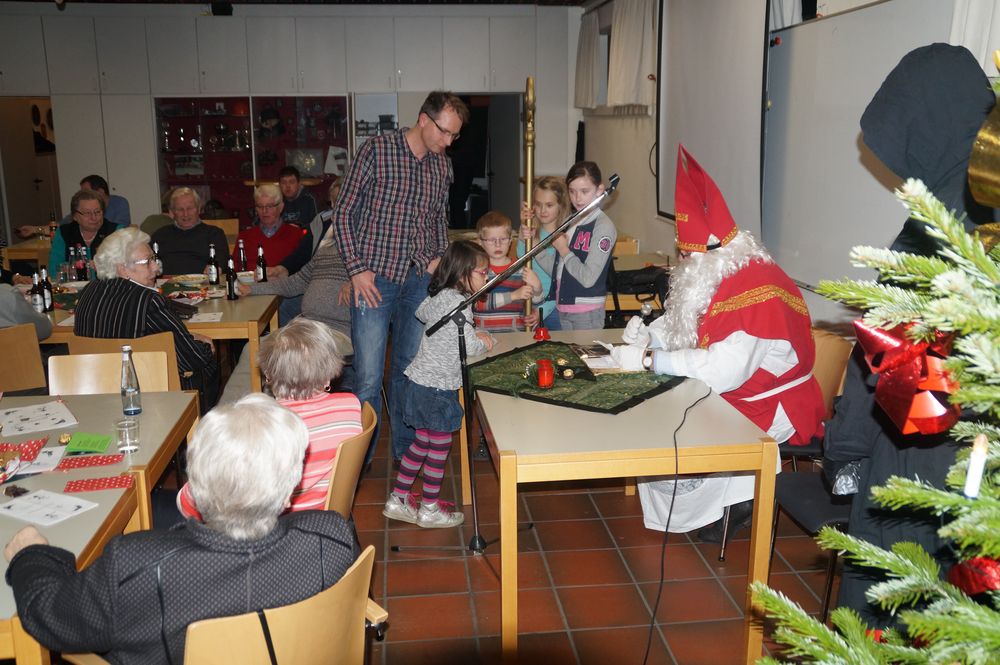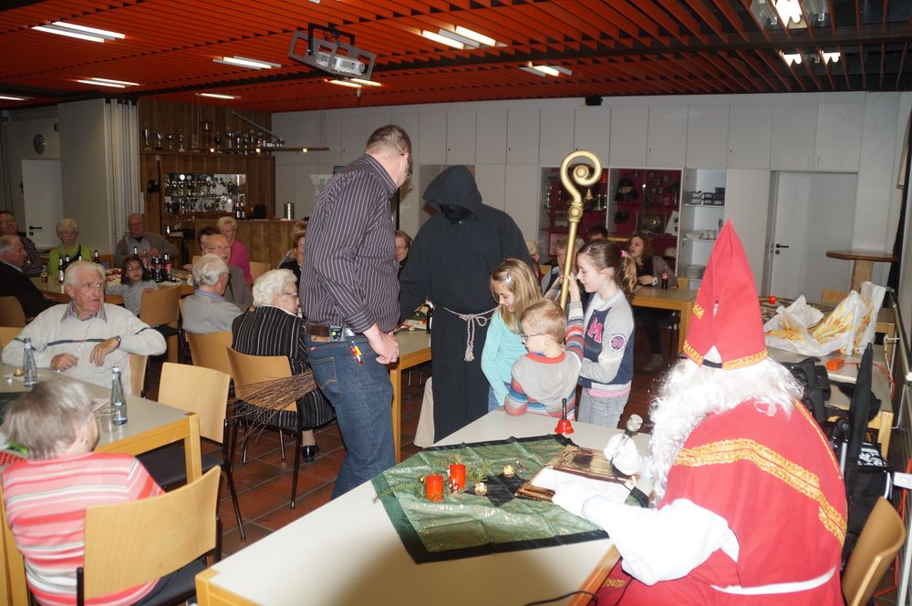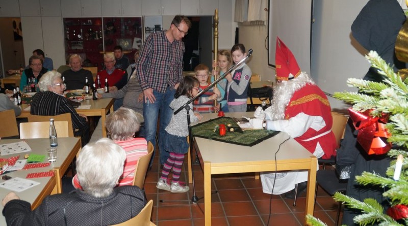 Am frühen Abend gesellten sich die jungen Familien hinzu, hatte doch der heilige St. Nikolaus sein kommen angekündigt. In voller Erwartung auf den Gast wurden gemeinsam Lieder gesungen oder den klängen des Musikzuges gelauscht. Lange ließ der Nikolaus nicht auf sich warten und wusste so einiges über die Kinder. Erstaunt waren die Kinder, das der Nikolaus auch etwas über den ein oder anderen Aktive Feuerwehrmann zu berichten hatte.
