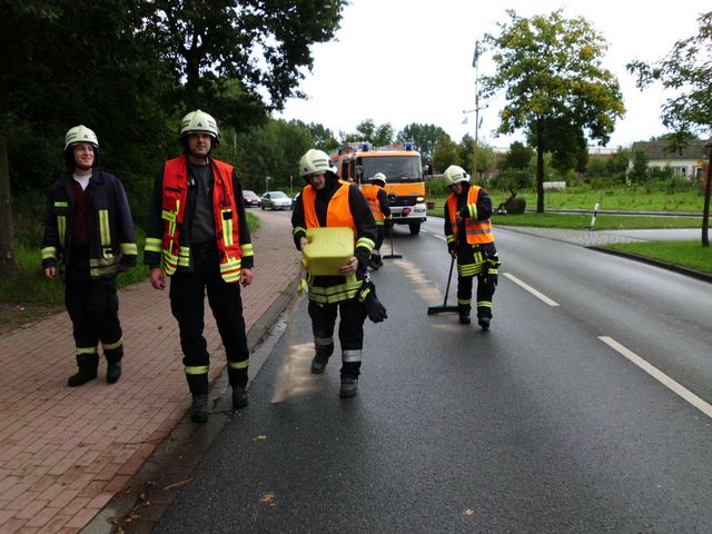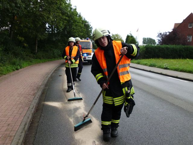 Mit entspr. Chemikalien wurde die Gefahrenstelle beseitigt und das Öl gebunden.