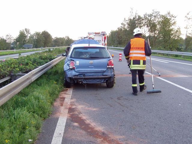 Zu einem Pkw Unfall ist eine Gruppe des Löschzuges Gescher-Stadt auf die BAB 31 Fahrtrichtung Oberhausen gerufen worden. Aus bislang unbekannter Ursache ist ein PKW alleine verunglückt, Personen kamen nicht zu Schaden. Die Kameraden fingen auslaufende Betriebsmittel des PKW auf und reinigten die Unfallstelle. Nach einer Stunde war der Einsatz beendet.