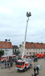 Während des Tages der offenen Tür hatten sich die Kameraden der Feuerwehr etwas Besonderes überlegt: Die Bevölkerung hatte die Gelegenheit einmal mit dem neuen Teleskopmast der Feuerwehr in die Höhe zu fahren. Weiter lesen: http://www.jugendfeuerwehr-gescher.de/?p=1435